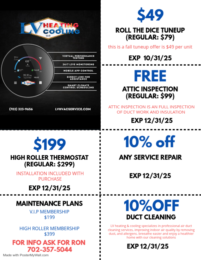 Please feel free to contact us at (702) 357-5044 or www.lvhvacservice.com for more information or to schedule a free consultation.